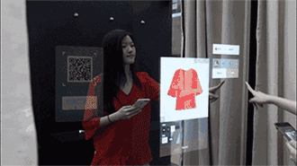 在每個(gè)試衣間,消費(fèi)者都將擁有一塊巨大的試衣鏡,無論是加購(gòu)、還是更改尺碼、更改顏色,都可以點(diǎn)擊試衣鏡完成。售貨員接到指令后,將重新為消費(fèi)者送上。